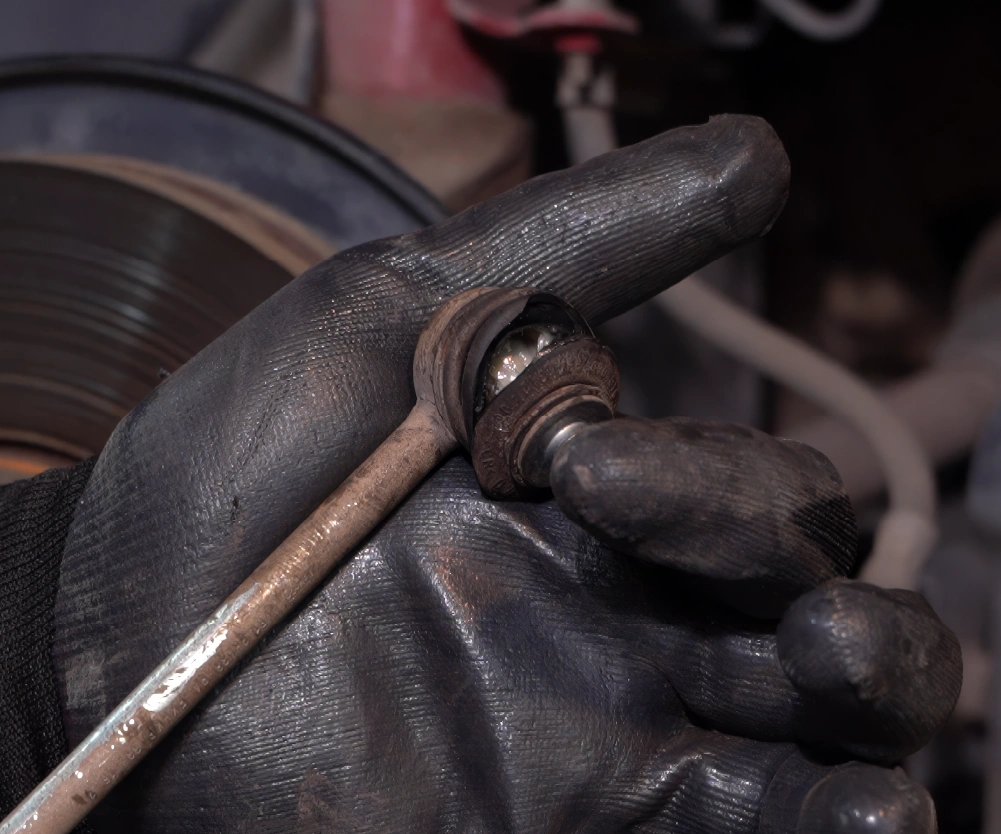 06 Gire el volante hasta el tope, agarre las bieletas de la barra estabilizadora con su mano e intente agitarlas. Si siente movimiento libre al hacerlo, el componente debería ser reemplazado.